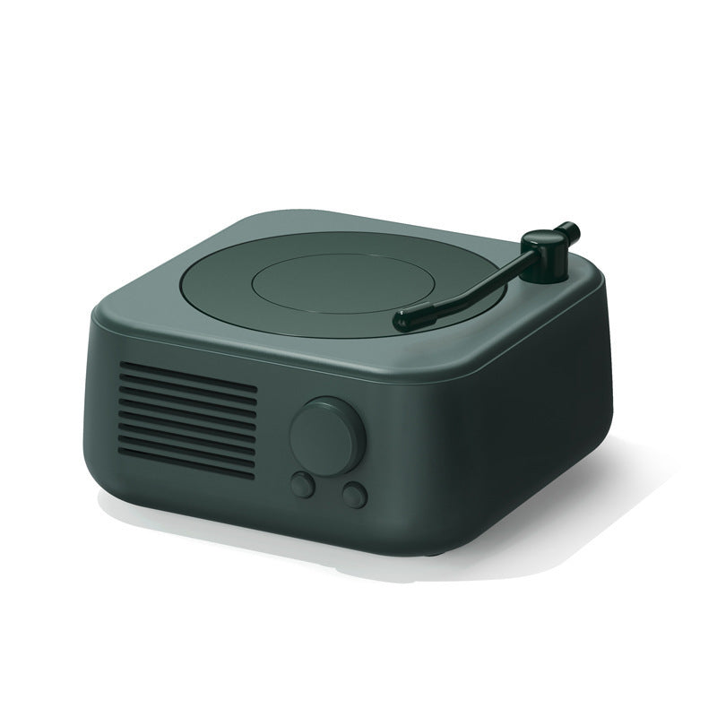 Retro Turntable Bluetooth 5.3 Speaker - 360 Surround Sound, FM Radio & TF Card Player(Dark green)