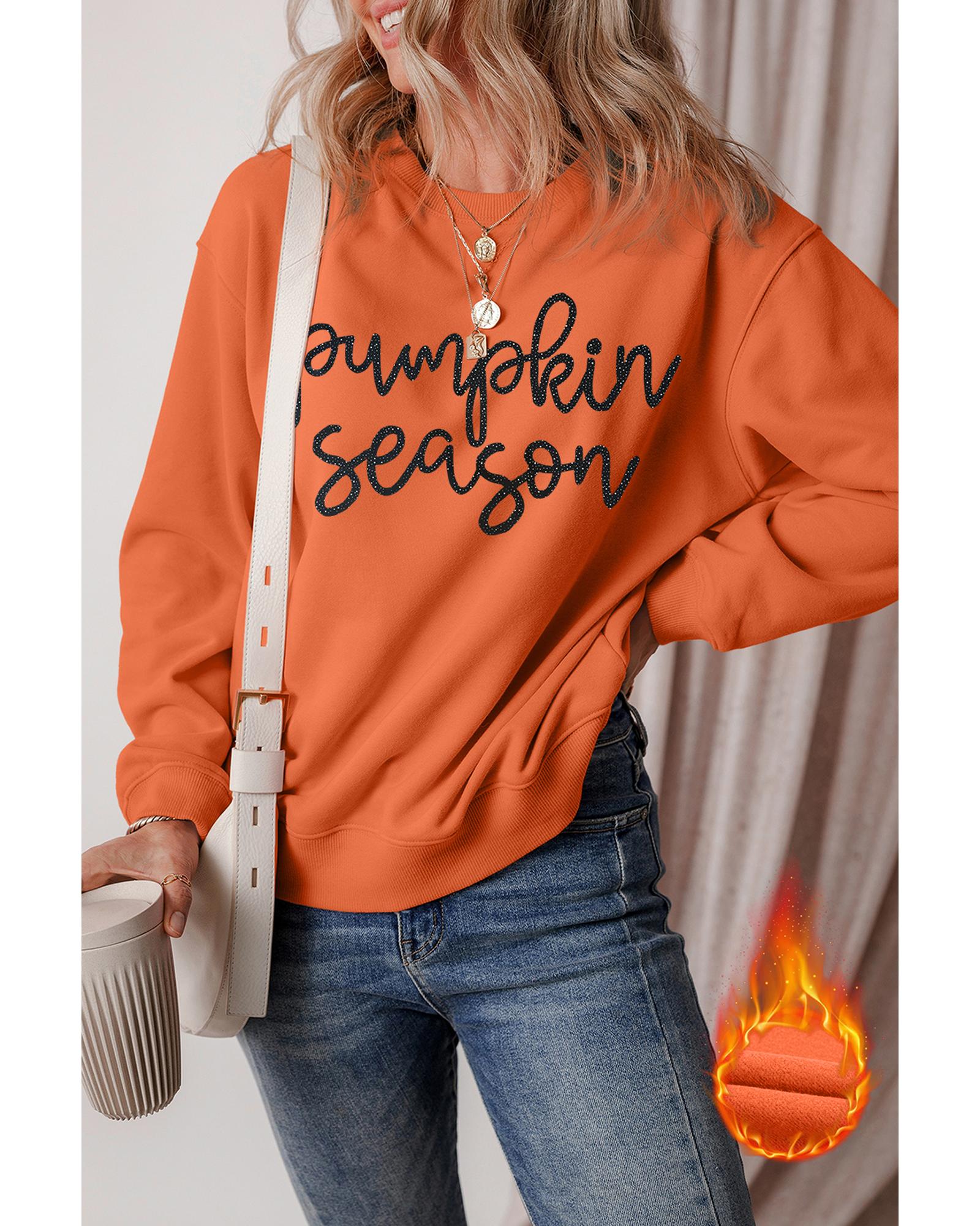 Russet Orange Glittering Pumpkin Season Graphic Drop Shoulder Pullover Sweatshirt - L