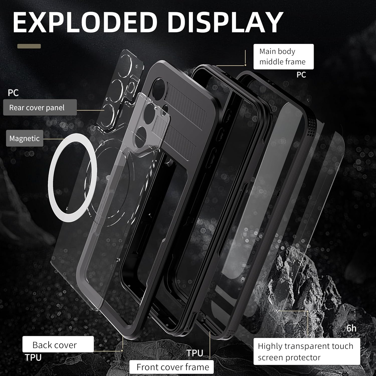 - 【HD Build-in Screen & Camera Protector】Designed for S25 Plus waterproof case specially with built in screen protector. 0.33mm sreen protector maintains 99.99% response sensitivity and never scratches. Specially designed black camera lens protector offers enough protection while brings every photo pristine beauty. All raised bezels effectively protect your screen and camera lens from any drops & scratches