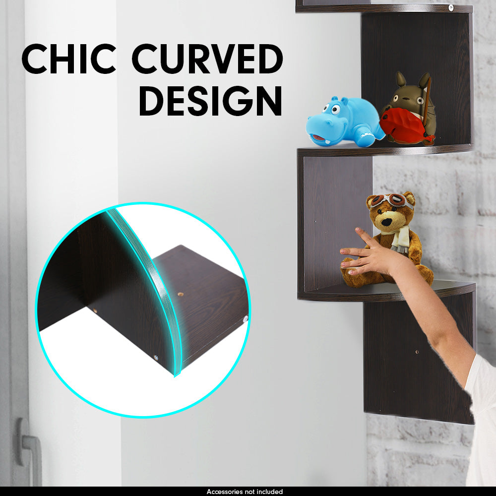 Sarantino 5 Tier Corner Wall Shelf Display Shelves Dvd Book Storage Rack Floating Mounted - Dark Brown
