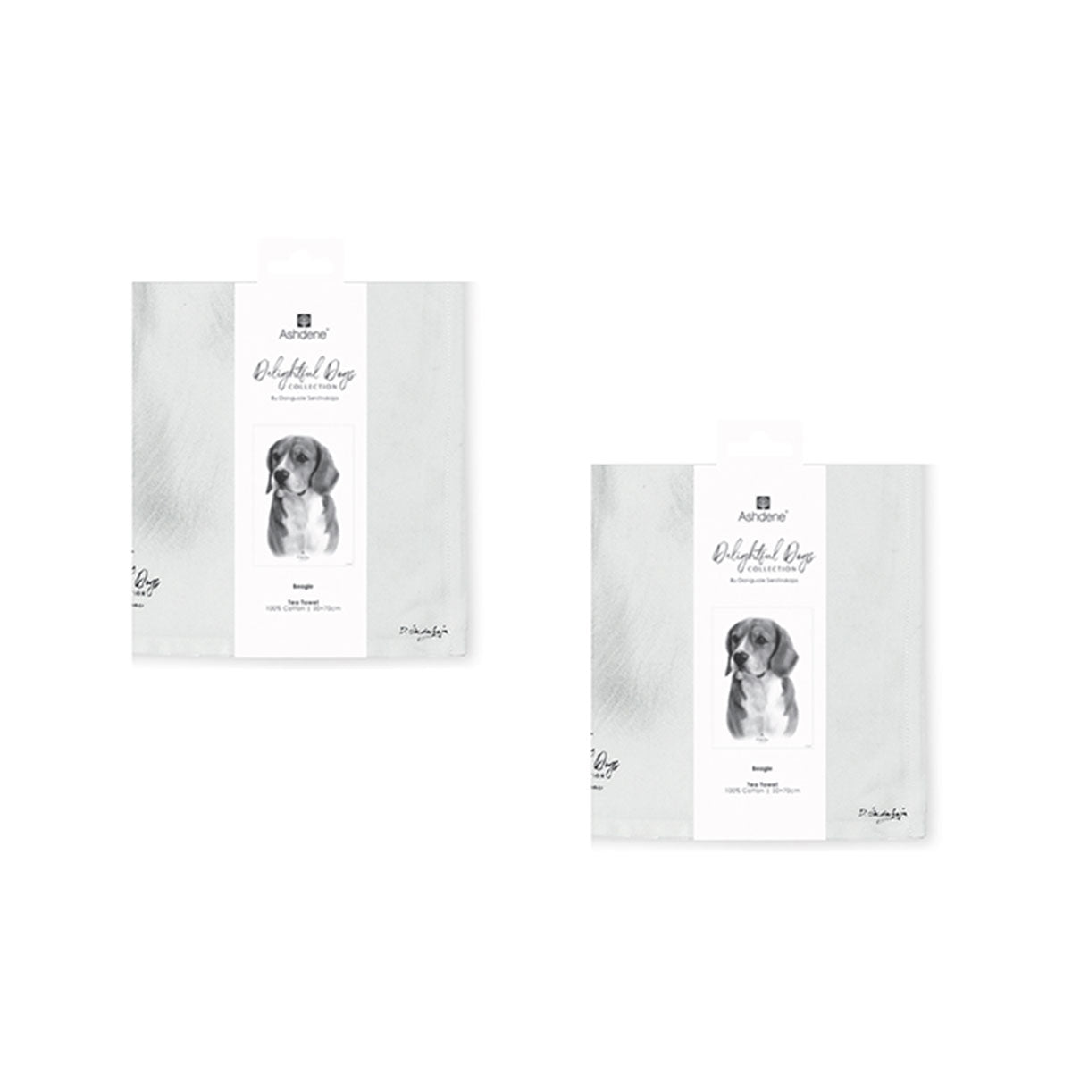 Set of 2 Delightful Dogs Cotton Kitchen Tea Towels 50 x 70 cm Beagle