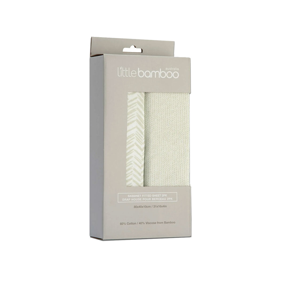Set of 2 Little Bamboo Jersey Fitted Sheet Bassinet Size Herringbone Whisper