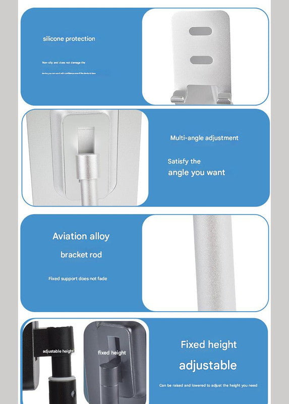 Silver Adjustable Aluminum Alloy Phone and Tablet Stand - Telescopic Desktop Holder for Live Streaming and Hands-Free Use