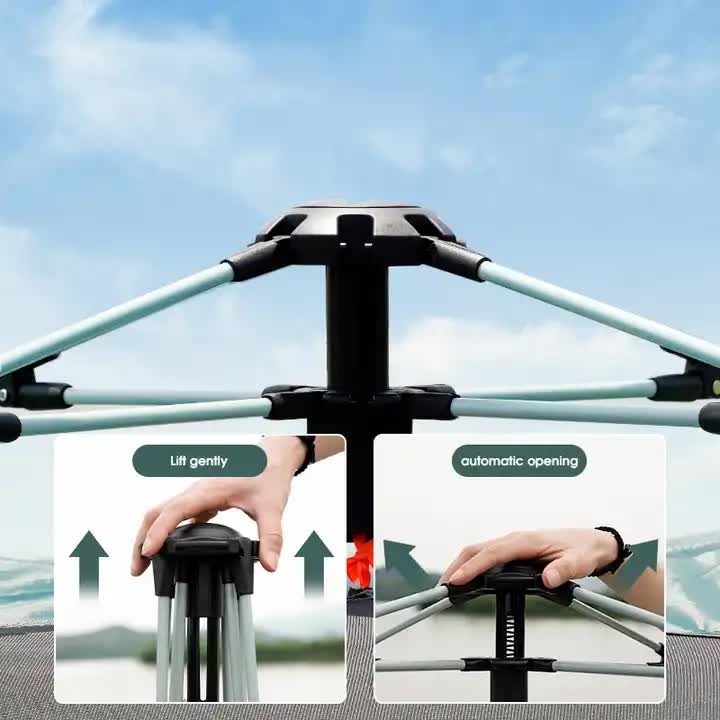 - Spacious 4-person capacity with an integrated awning for shade and protection