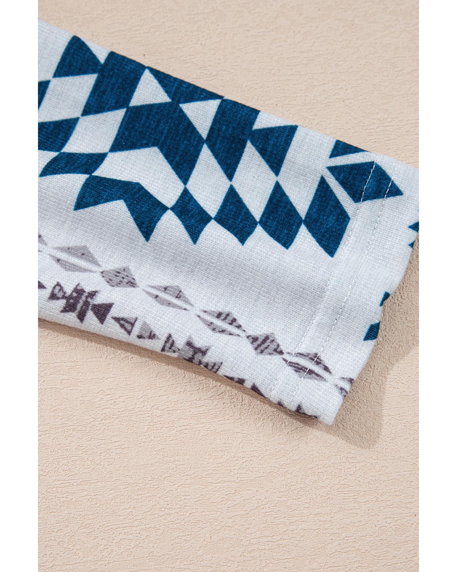 Sky Blue Western Aztec Printed Open Front Long Cardigan - M