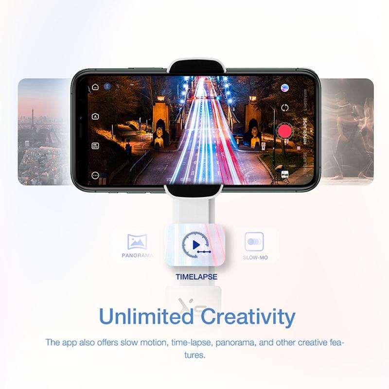• Physical joystick and other controls on the gimbal for direct interaction with phone