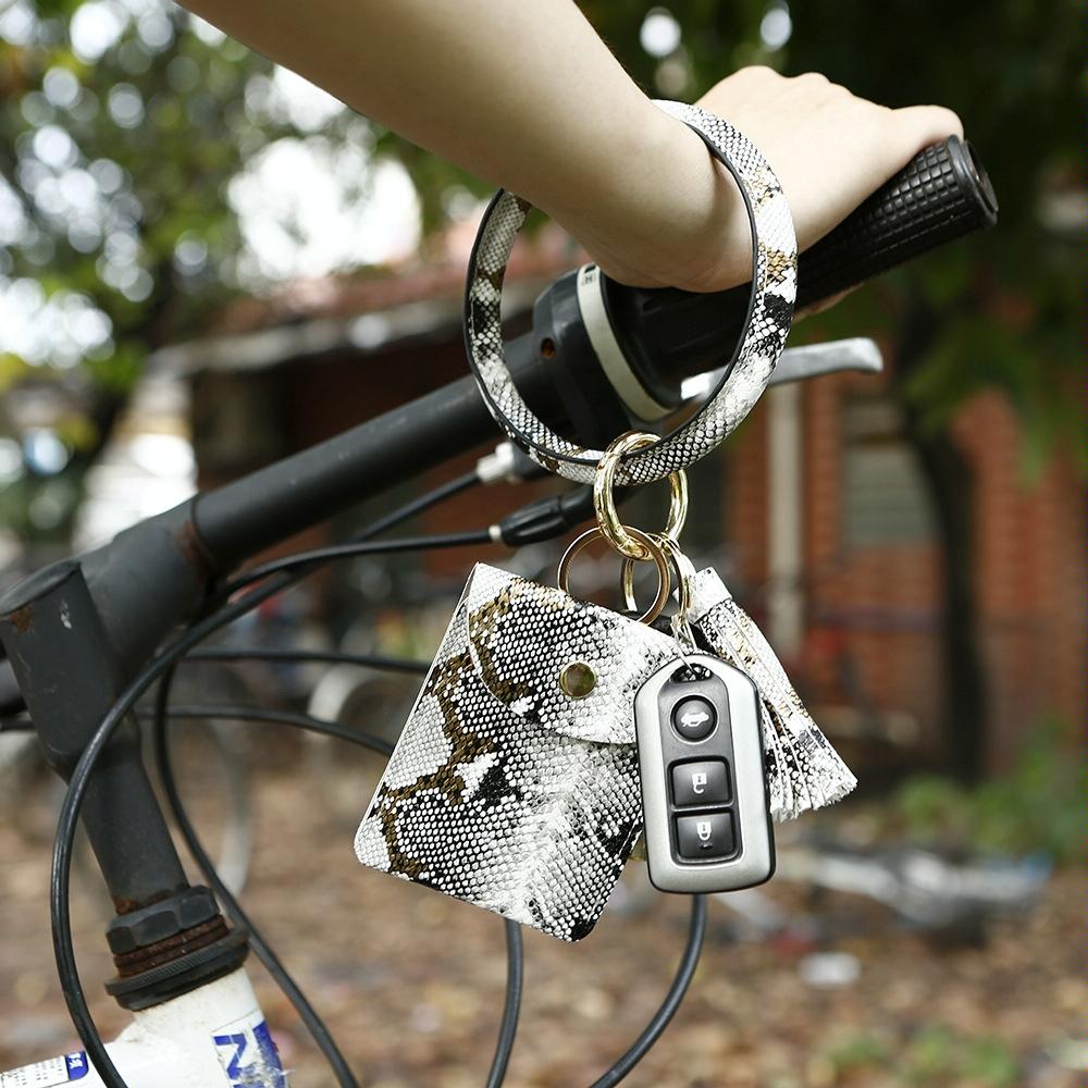 Snake Print Wrist Keychain Coin Purse Black Pu Leather Bracelet Card Case - White