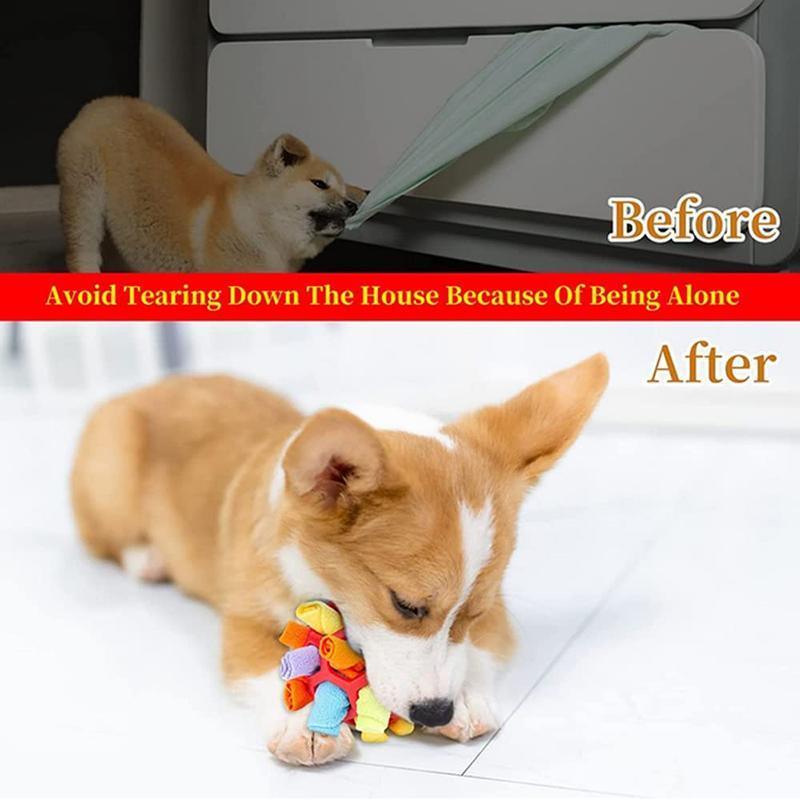 Stress-relieving dog toy helps reduce separation anxiety and boredom through scent-focused play, suitable for indoor environments and solo use.