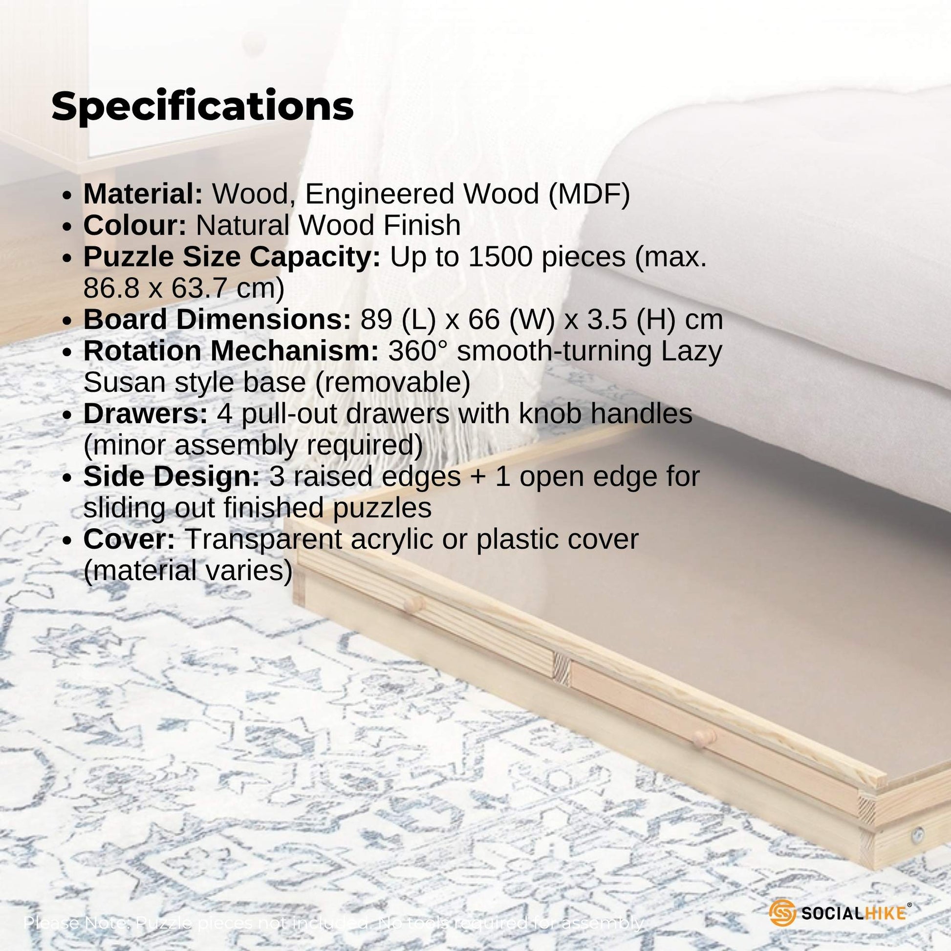 Social Hike 1500pcs Puzzle Board 4 Drawer with Cover - Wooden Rotating Tabletop