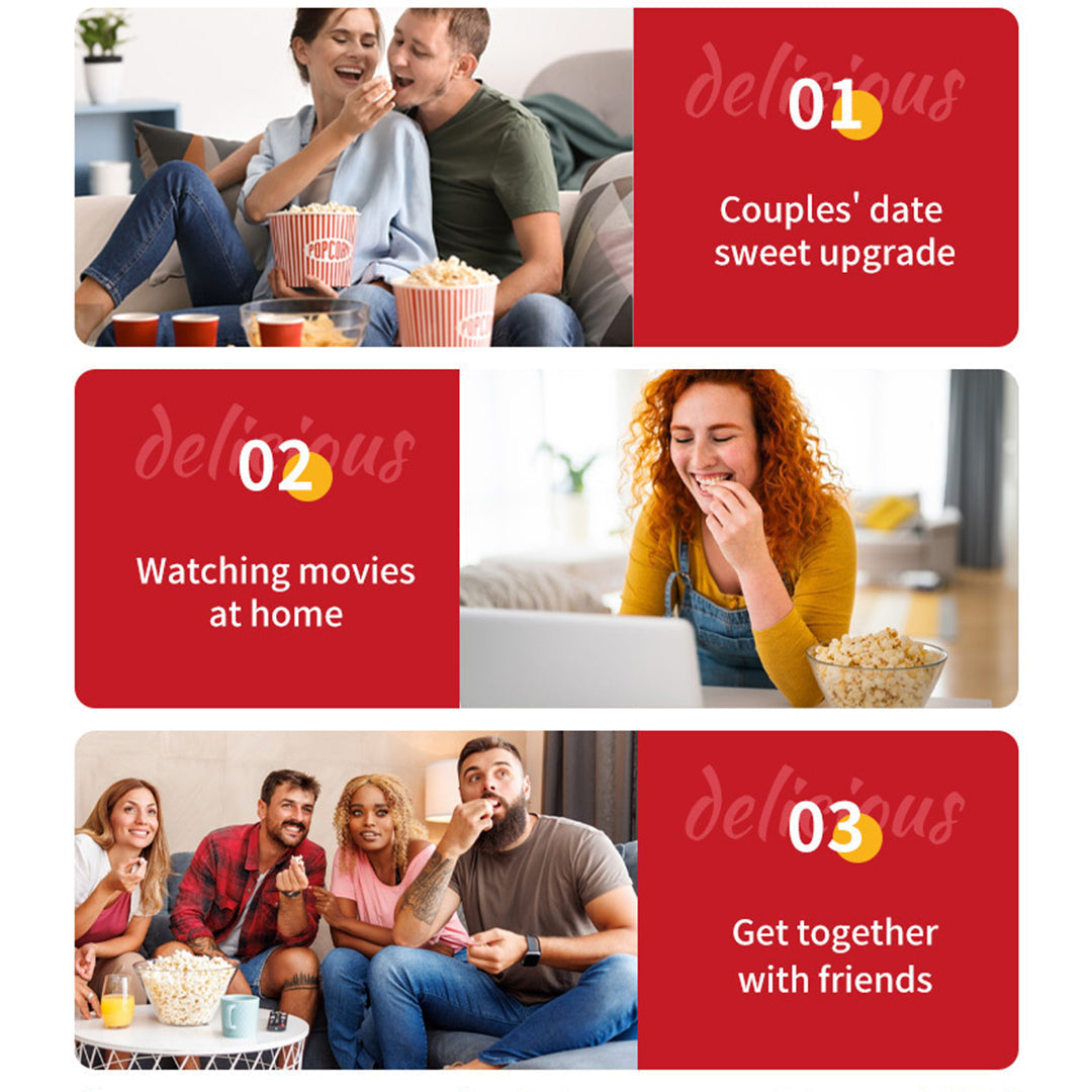 Perfect for home movie nights, parties, and anytime snack cravings!, Note: Popping time may vary depending on the quality and freshness of the kernels used. If the kernels are old or of lower quality, they may take longer to pop or result in fewer popped pieces. For best results, we recommend using fresh, high-quality popcorn kernels