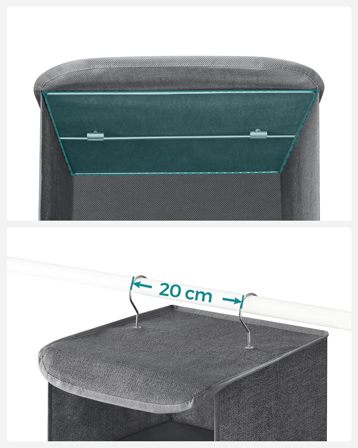 No Swaying or Deforming: The 2 hanging hooks at the top help prevent the wardrobe