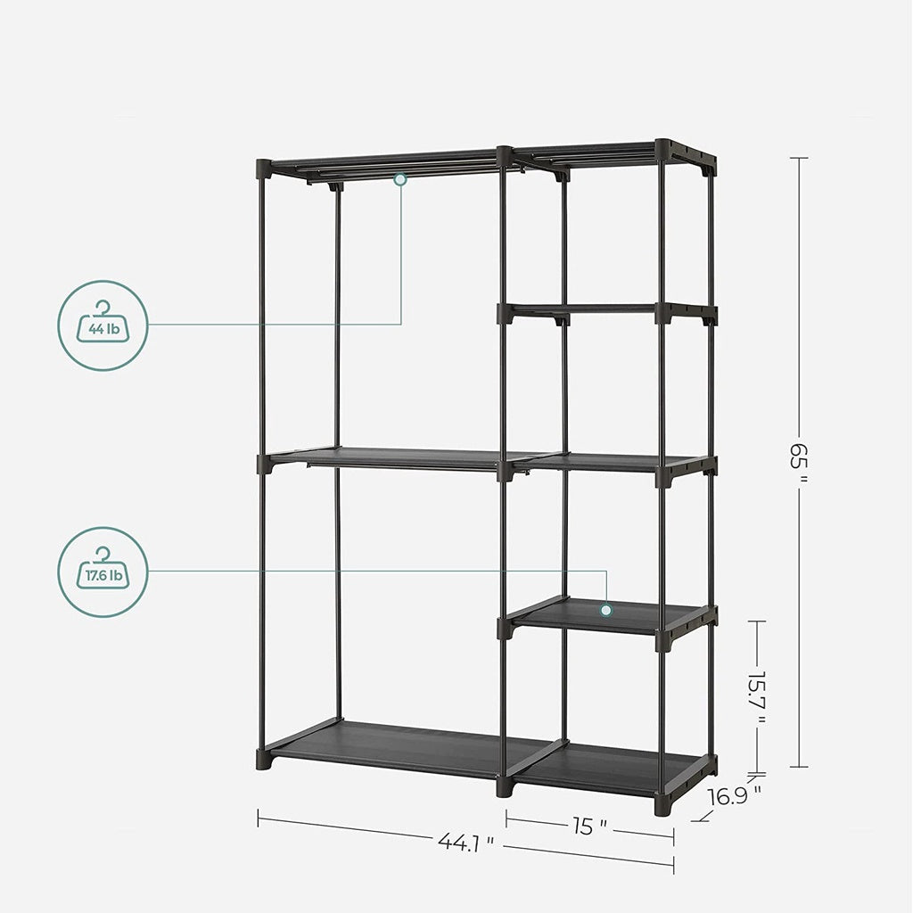 SONGMICS Portable Closet Wardrobe with 2 Hanging Rods Black