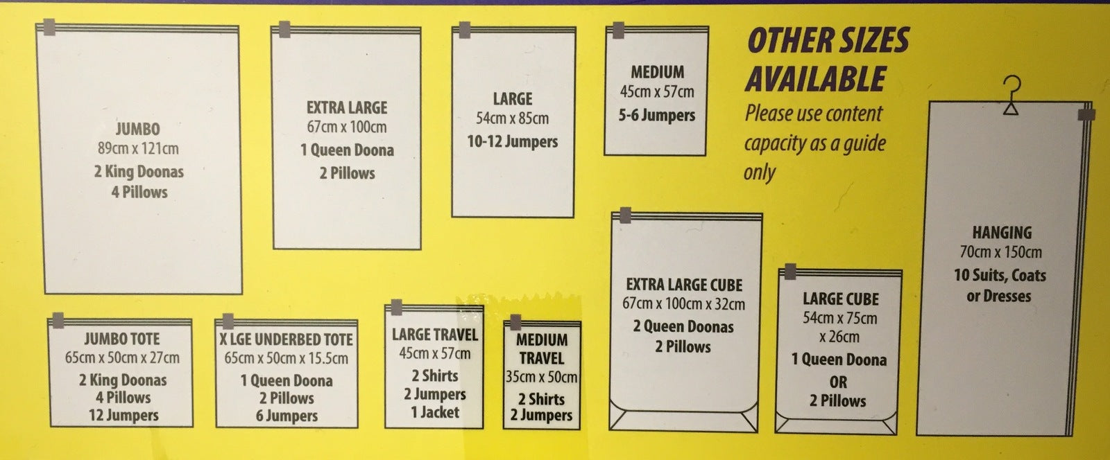 - Large holds 2 Shirts, 2 Jumpers, 1 Jacket or equivalent Medium holds 2 Shirts, 2 Jumpers or equivalent.