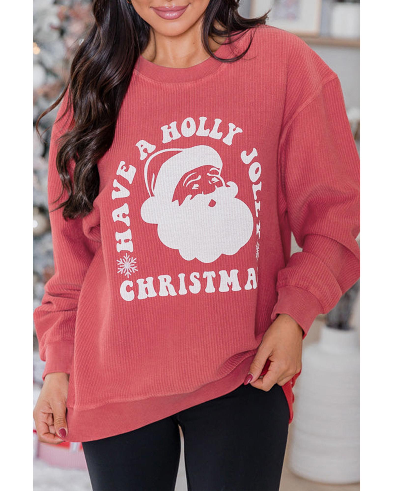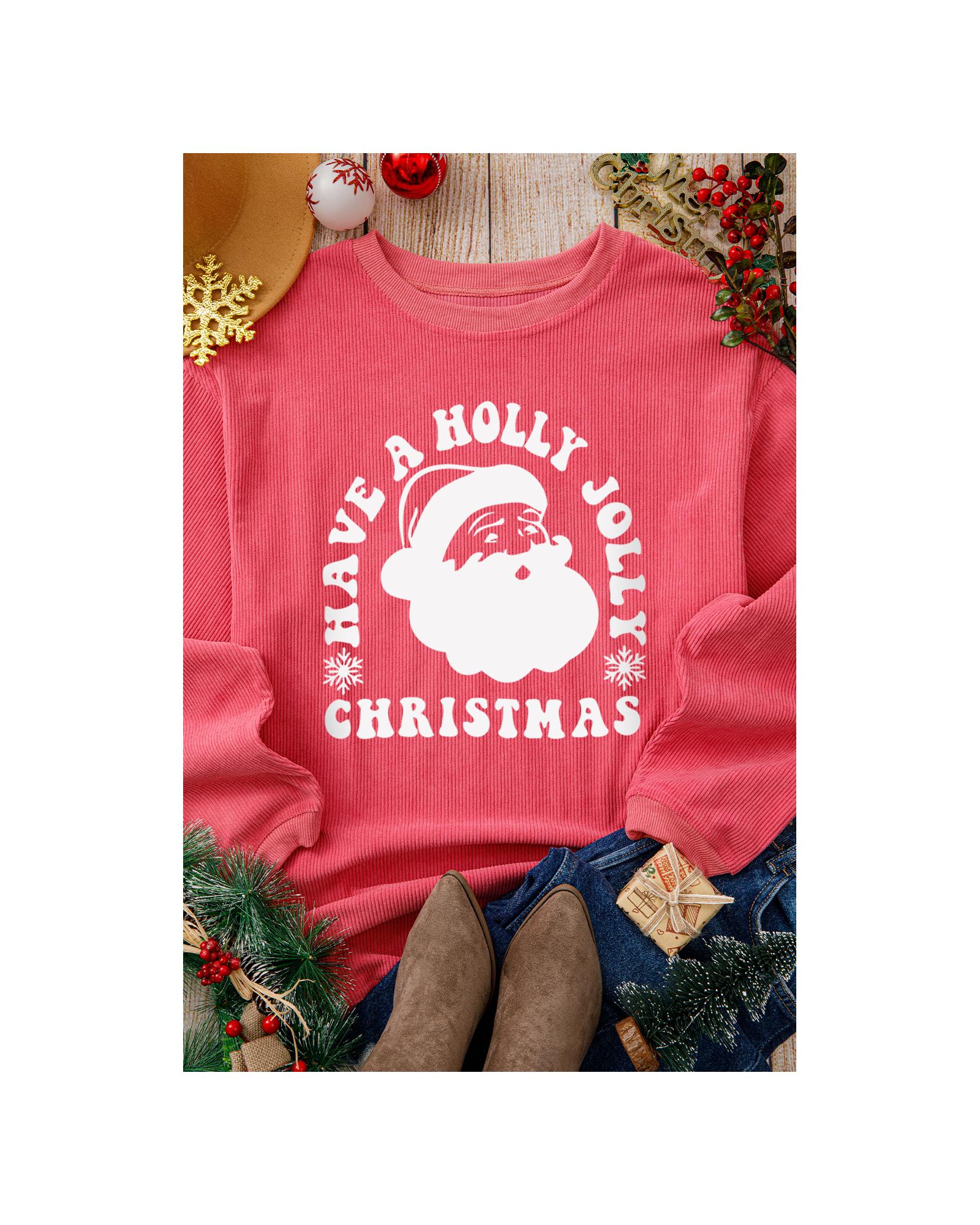 Strawberry Pink HAVE A HOLLY JOLLY CHRISTMAS Corded Sweatshirt - L
