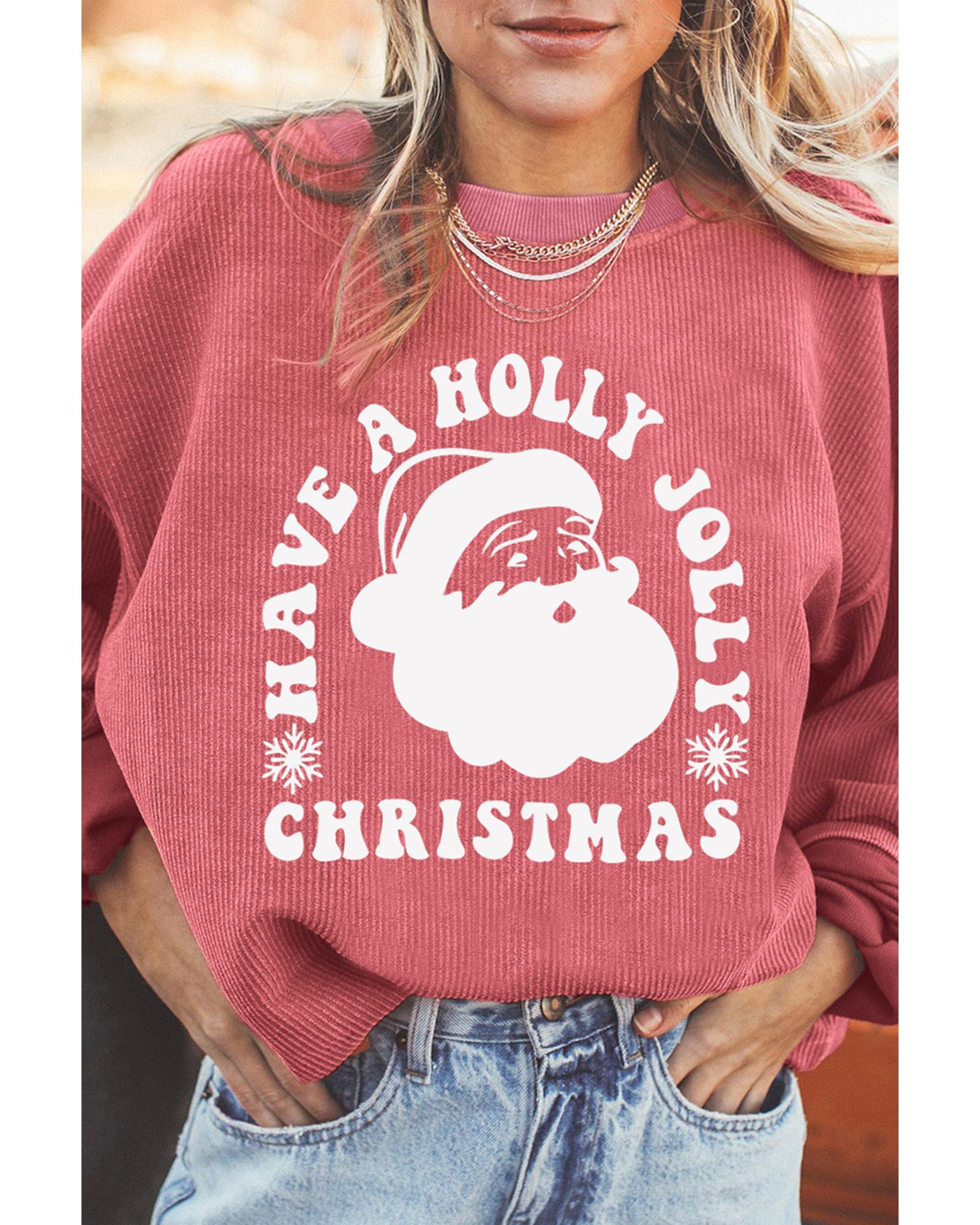 Strawberry Pink HAVE A HOLLY JOLLY CHRISTMAS Corded Sweatshirt - M