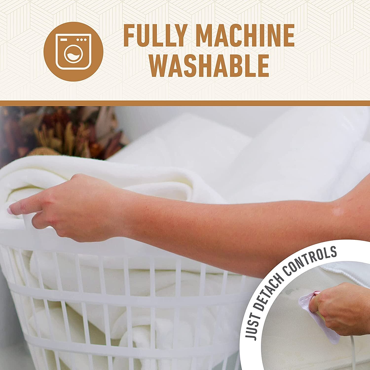 - MACHINE WASHABLE: Detachable controls and waterproof elements make the blanket fully immersible and safe to wash by hand or machine. It may also be tumble dried.
