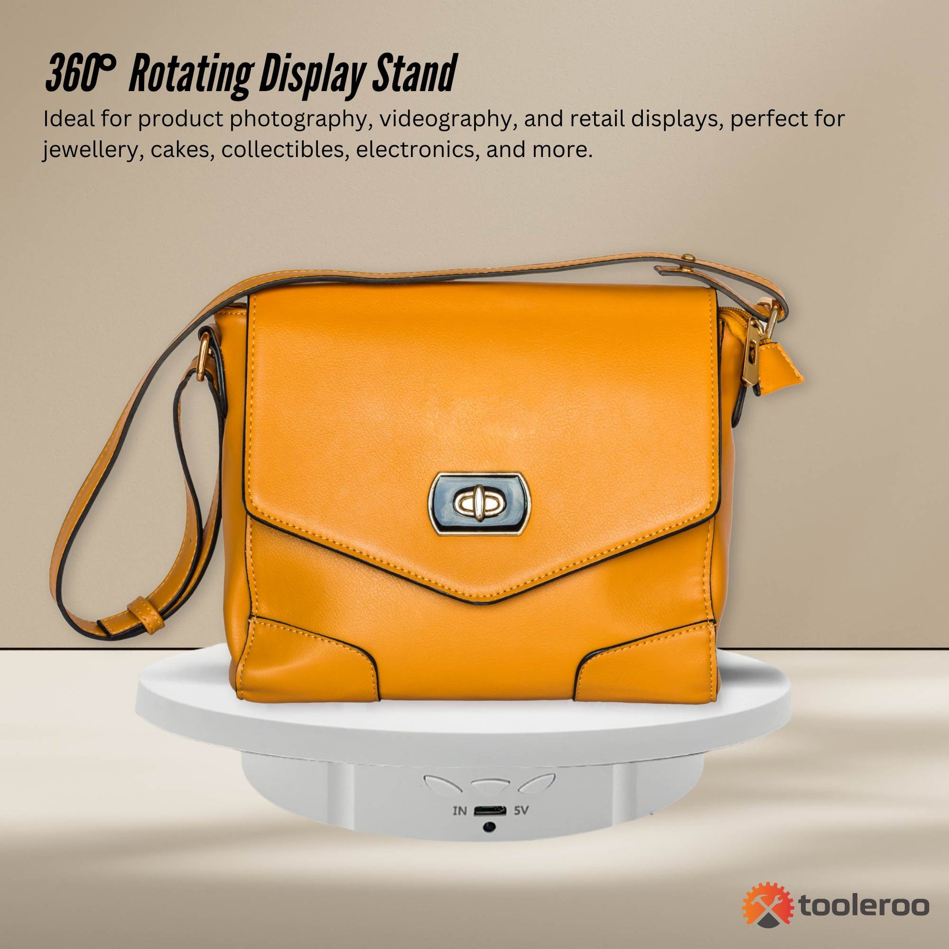 - 360° Rotating Display Stand – Ideal for product photography, videography, and retail displays, this electric turntable ensures smooth and quiet rotation, perfect for jewellery, cakes, collectibles, electronics, and more.