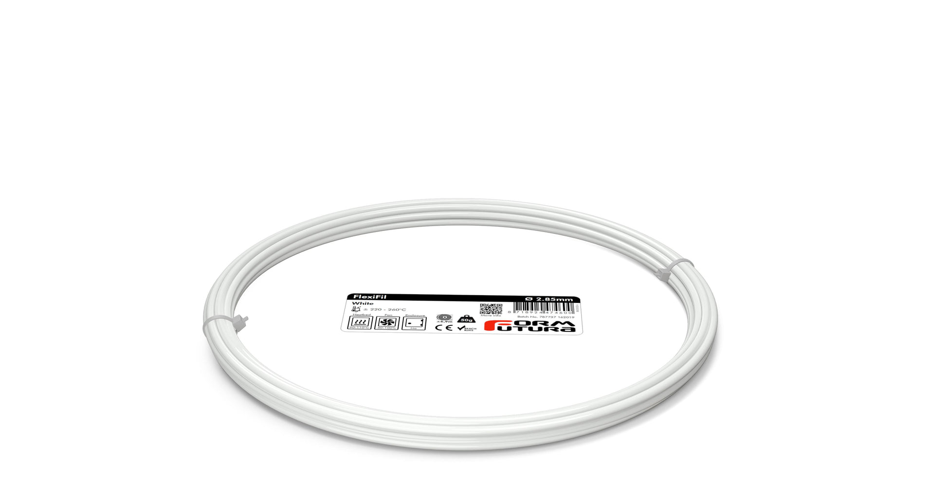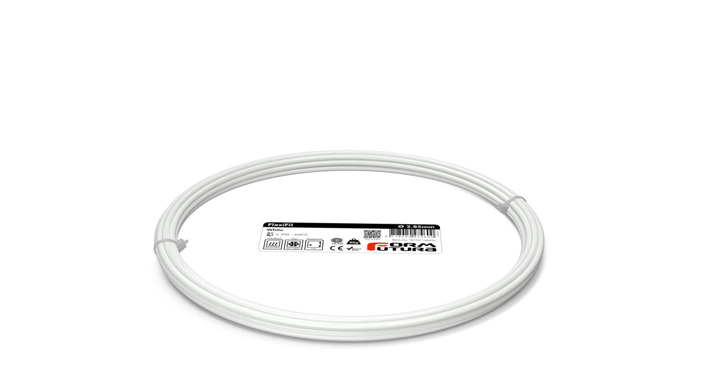 FlexiFil is a rubber-like high-performance and partially bio-based flexible TPC (Thermoplastic Co-Polyester) type of 3D printer filament. FlexiFil has unique flexural strength properties, as 3D printed objects with FlexiFil will have a “flexural memory”, allowing objects to return back to their original position or shape after being bent, dent, or folded. Next to this FlexiFil offers a unique combination of flexibility, long term heat resistance, strength, excellent UV resistance and good resistance to chemicals.