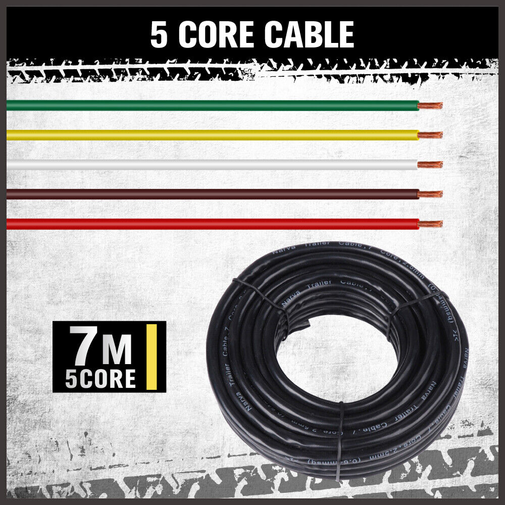 Trailer Tail Light Kit Pair Plug 7m 5 Core Wire Turn Signal 7 Pin Flat Plug Set