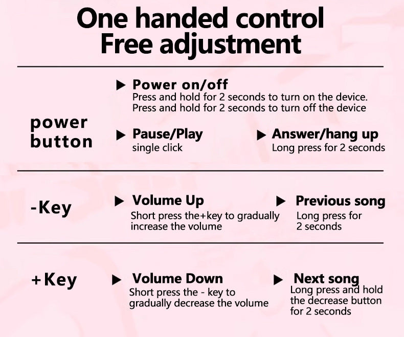 - Easy One-Handed Controls: Intuitive buttons for power, play/pause, answer/hang up, volume up/down, and previous/next song.