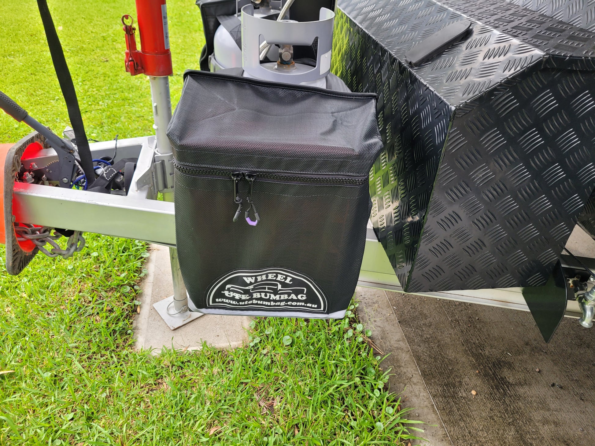 The Ute Bumbag is made from a woven mesh fabric, called truck mesh, that is built to last, look and smell great. When compared to the canvas materials used for other dirty gear bags, rubbish bags, tyre bags, wheel bags, stone guard bags, bladder bags, ute tailgate bin bags, or tailgate bags (the Ute Bumbag replaces them all), our product withstands the demands of being all-purpose under the harsh Australian sun with ease.