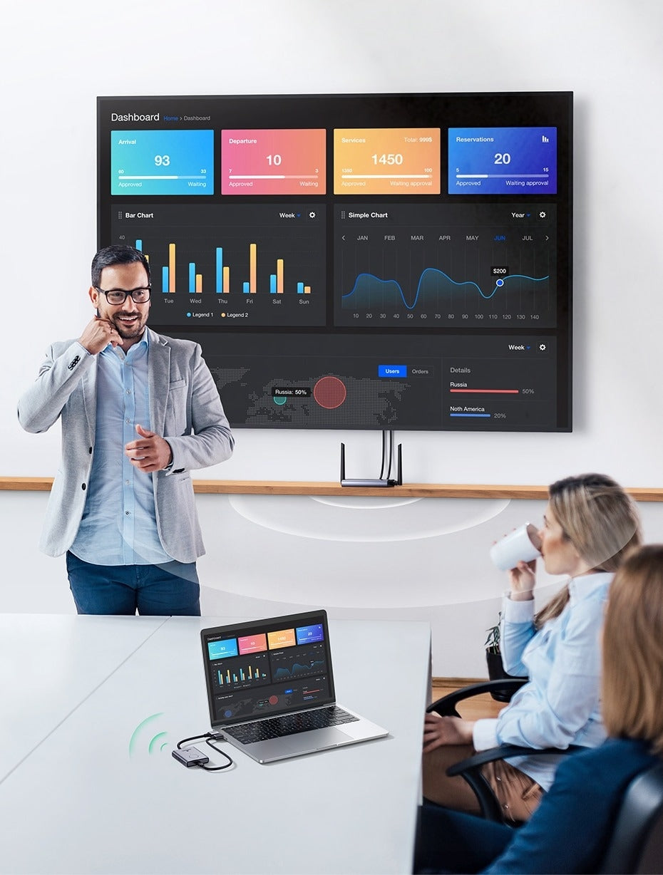 With impressive transmission distance, you can easily place the monitor or TV anywhere in the room without having to worry about pulling long cables.