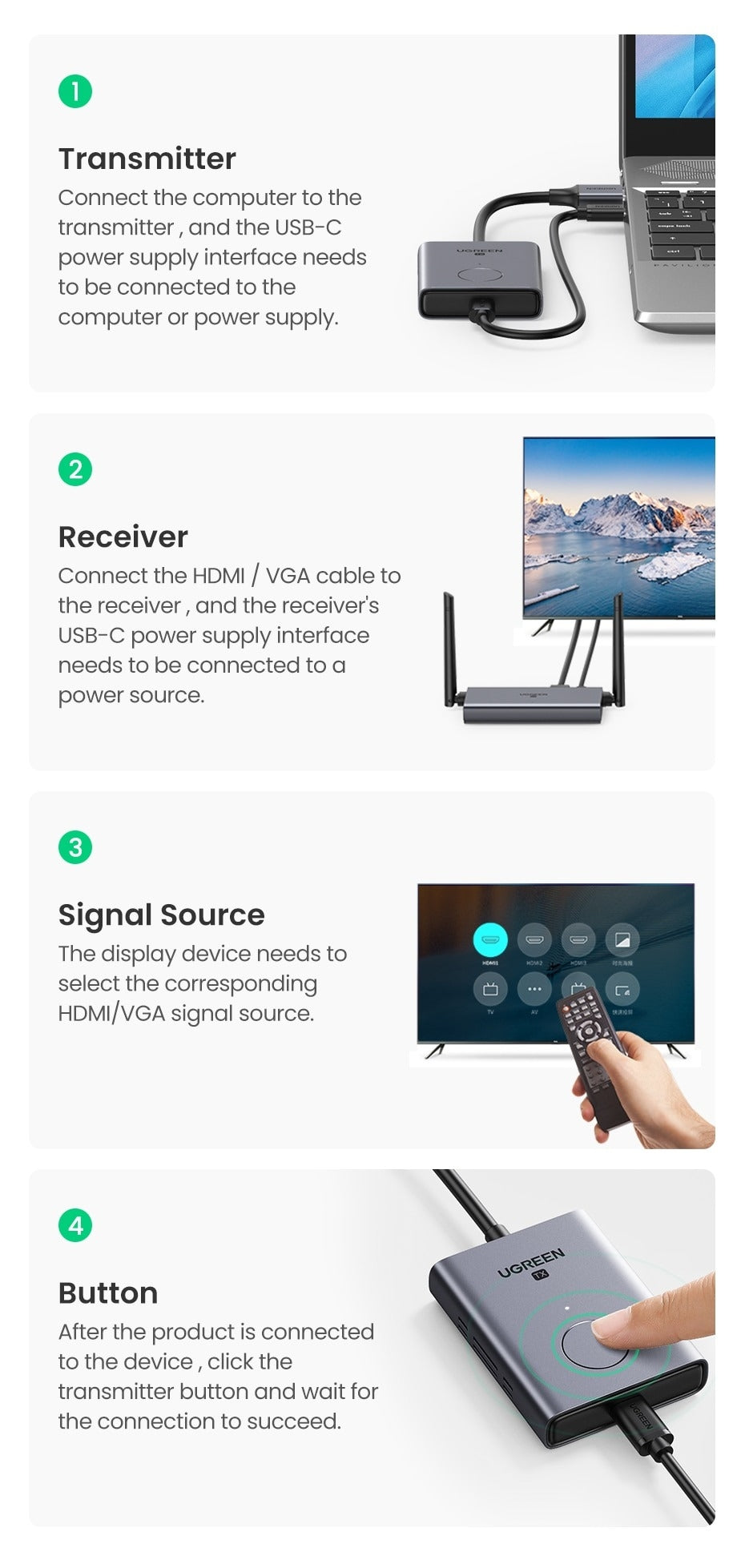 UGREEN 50633A Wireless HDMI Extender Transmitter and Receiver 70m