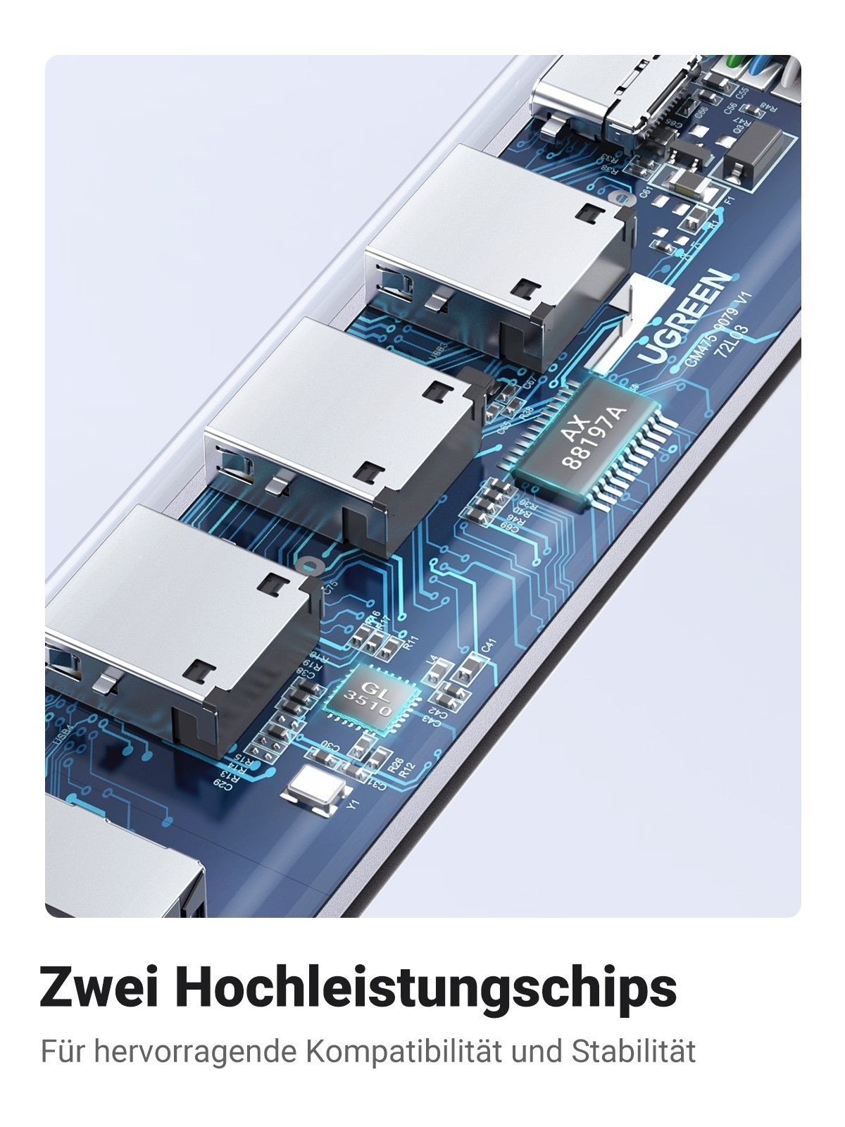UGREEN 60554 USB 3.0 to Ethernet Adapter 5 in 1 Multiport Hub with Gigabit RJ45