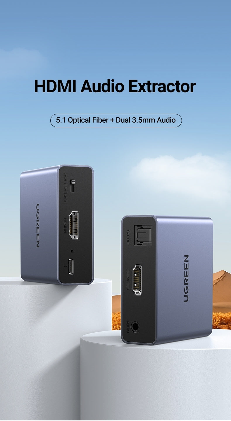 UGREEN 60649 HDMI Audio Extractor (SPDIF + 3.5mm AUX)