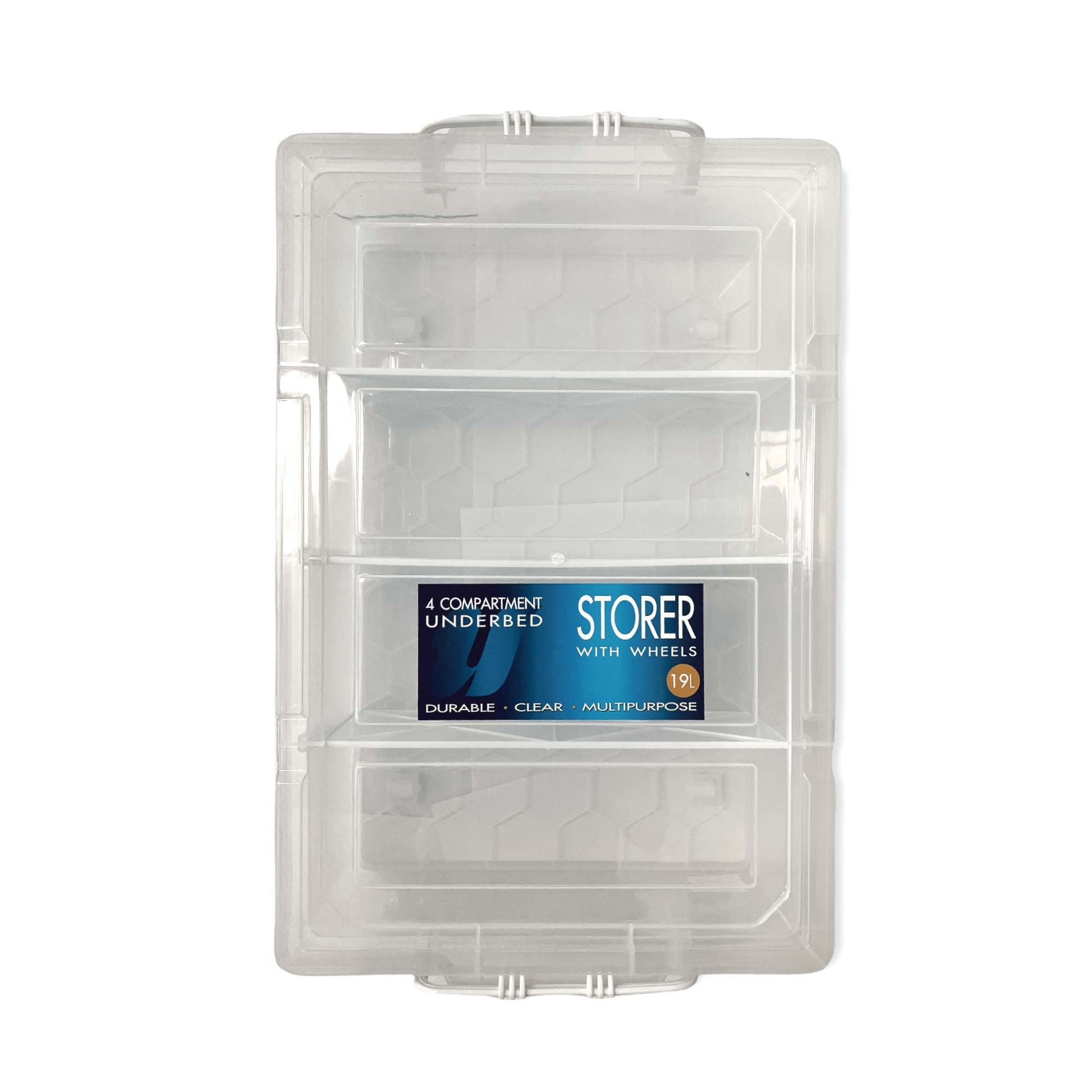 Under Bed 4 Compartment Storer with Wheels 19L Container Tub Storage Unit