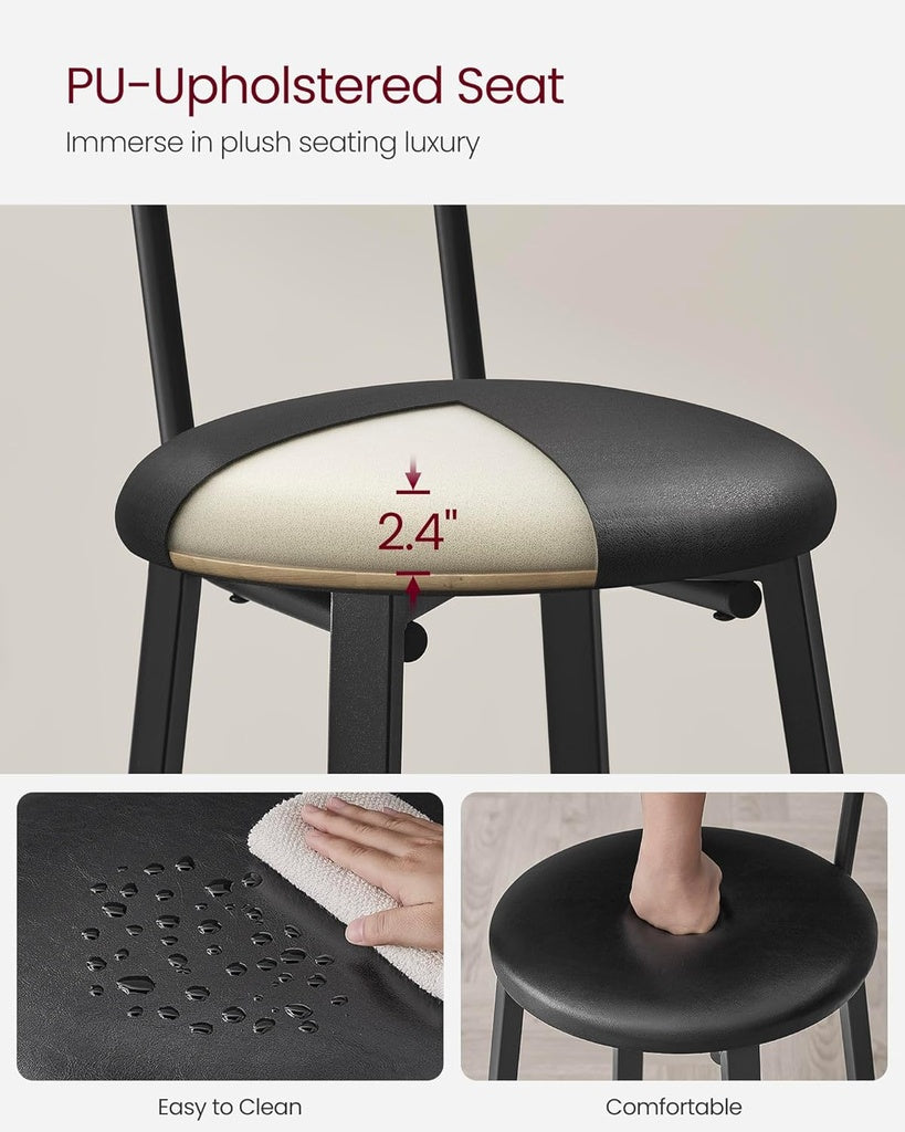 - No Sacrificing Comfort for Style! Striking a balance between comfortable home living and industrial trends, these bar stools feature well-padded cushions, PU leather upholstered seats, looped footrests, and low backrests, allowing you to sit at leisure
