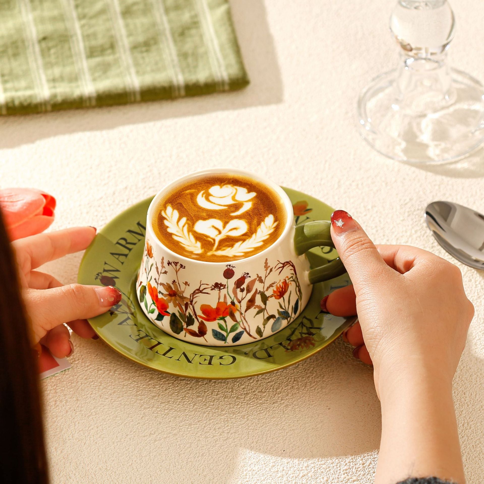 Vintage Floral Ceramic Coffee Cup & Saucer Set - 300ml, Creative Design for Hot Beverages