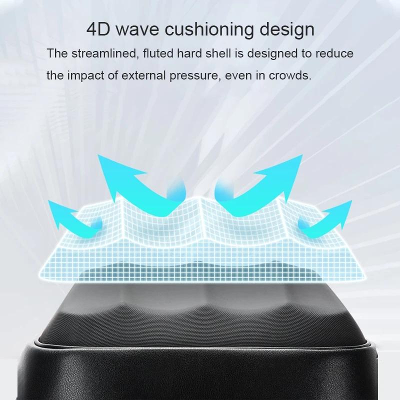 • 4D three-dimensional corrugated buffer design and streamlined grooved hard shell for impact resistance