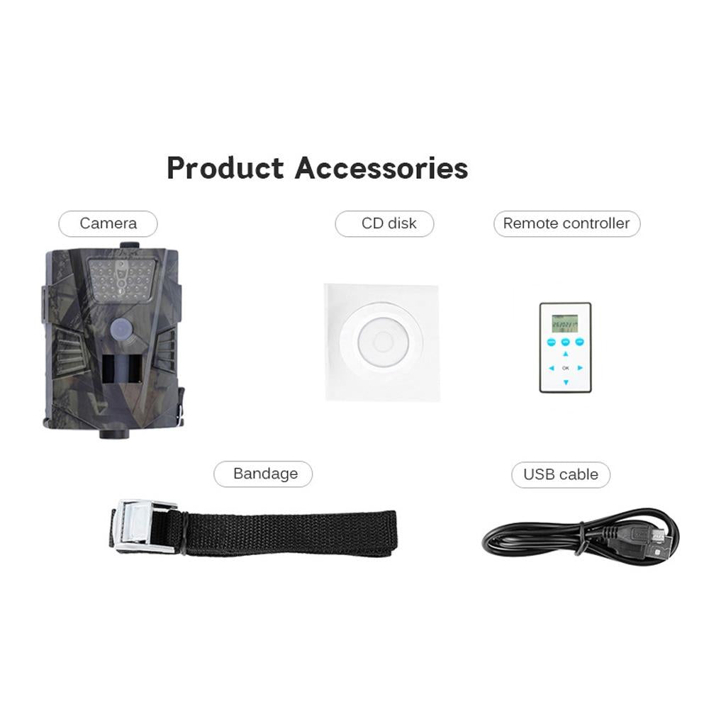 • 1 x Ht-001 1Mp Ip54 Waterproof Ir Night Vision Security Hunting Trail Camera Novatek96220 Program 120 Degree Wide Angle 100 Degree Pir Sensing Angle