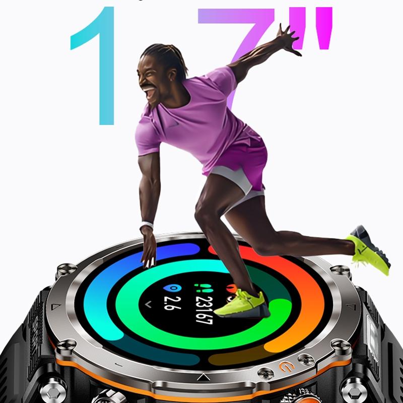 Waterproof Smart Watch With Flashlight And Compass - 1 Inch - Black