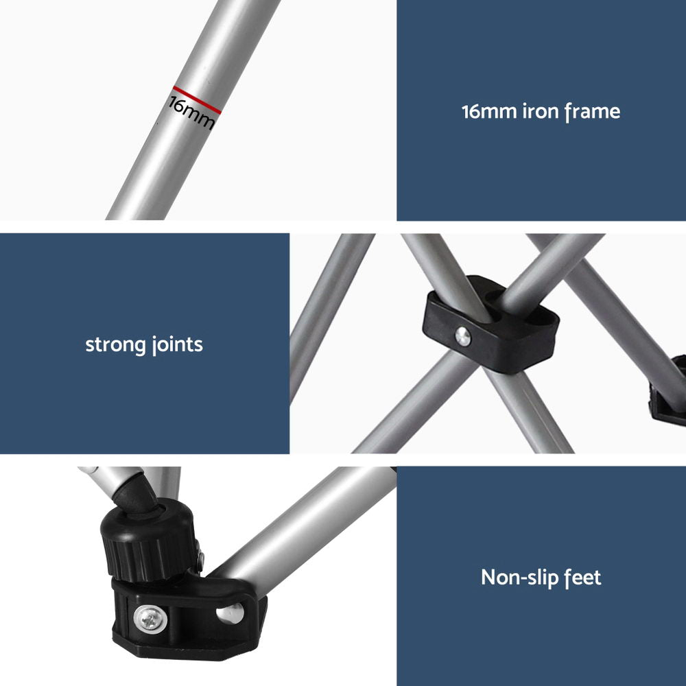 Experience versatile comfort wherever your adventures take you with the Weisshorn Reclining Camping Chair. Designed with a smart 2-in-1 function, this chair easily transforms from a supportive seat into a relaxing bed, giving you the flexibility to lounge your way. The 4-level adjustable backrest lets you find the perfect angle, whether you're sitting upright by the campfire, reclining with a book, or lying back for an afternoon nap. Crafted from strong yet breathable 600D Oxford fabric, paired with a durable iron frame, this chair provides lasting support with a maximum load capacity of 130kg while weighing only 3kg for effortless portability. Thoughtful details enhance your outdoor comfort, including a removable pillow for personalised head and neck support, a built-in drink holder to keep your beverage close at hand, and a side storage pocket for essentials like phones, snacks, or sunglasses. Compact and easy to carry, it folds down neatly when not in use, making it simple to store in your car, caravan, or shed. With no assembly required, the Weisshorn Reclining Camping Chair is ready for action in seconds, whether you're at the campsite, beach, park, or even your backyard. Blending lightweight portability with practical design, it's the perfect companion for campers, travellers, and anyone who enjoys relaxing outdoors in comfort.