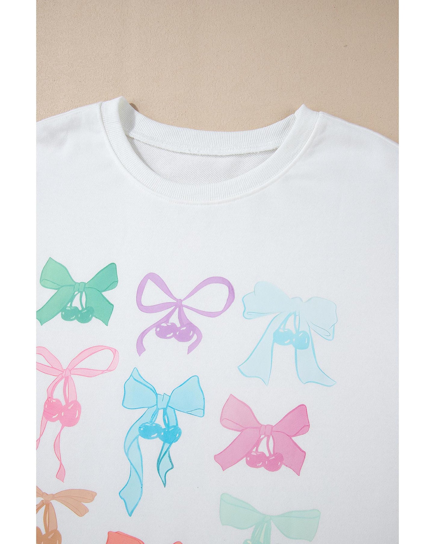 White Bowknot Pattern Drop Shoulder Loose Sweatshirt - L