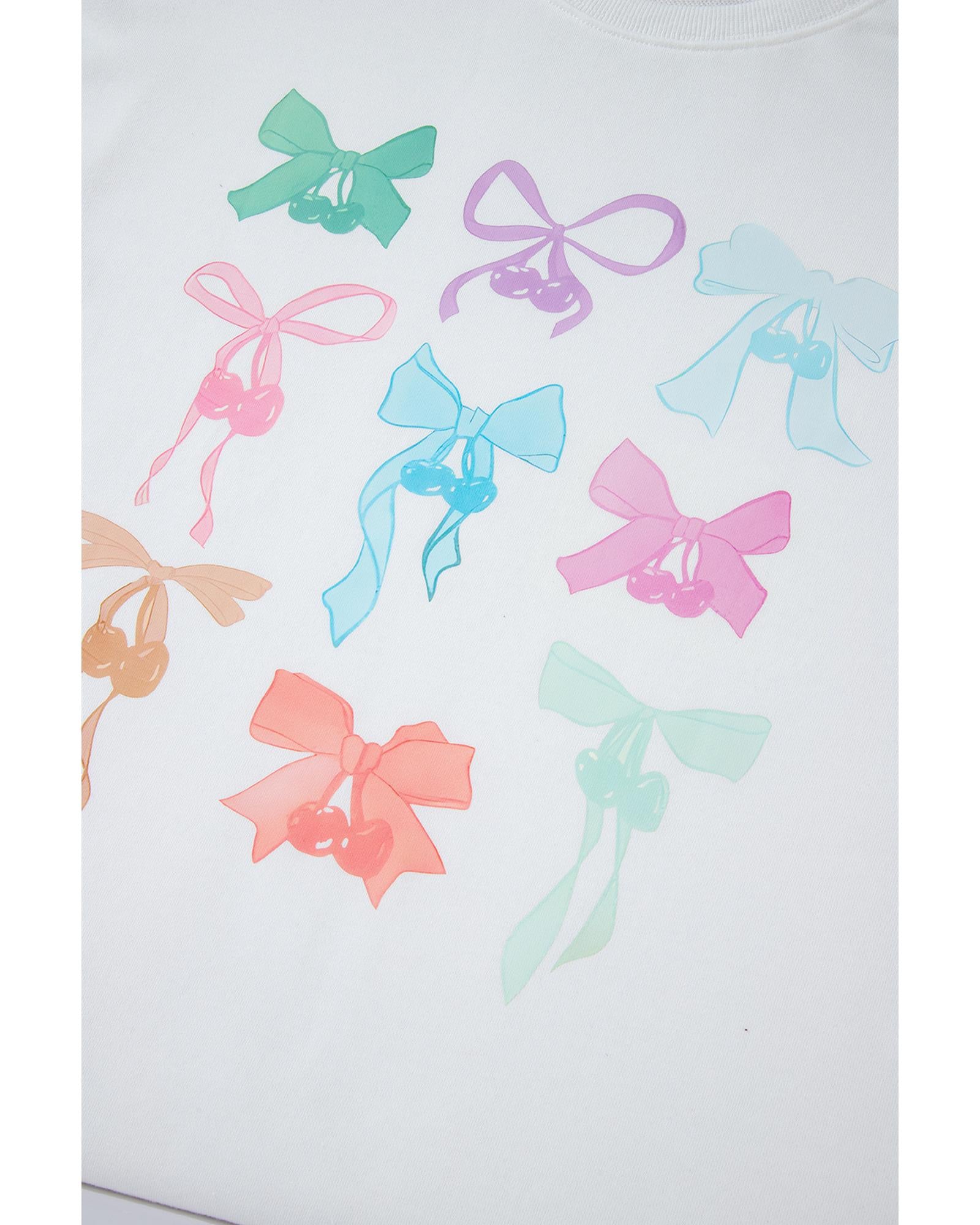 White Bowknot Pattern Drop Shoulder Loose Sweatshirt - M