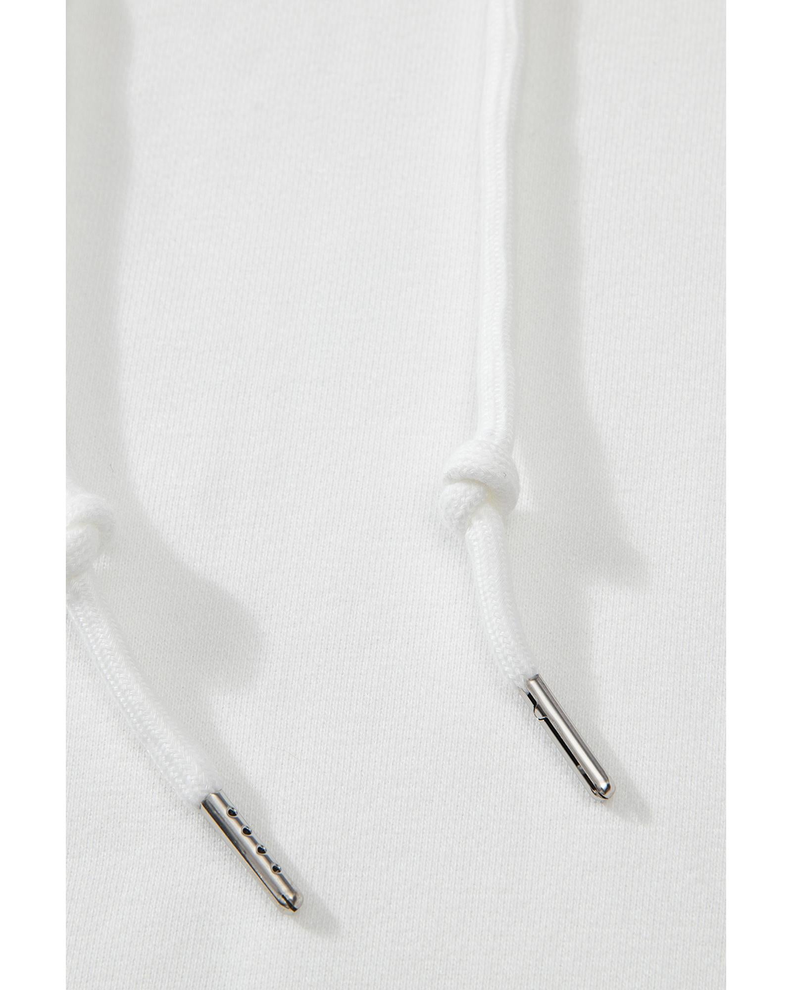 White Fleece Lined Kangaroo Pocket Drawstring Chunky Hoodie - L