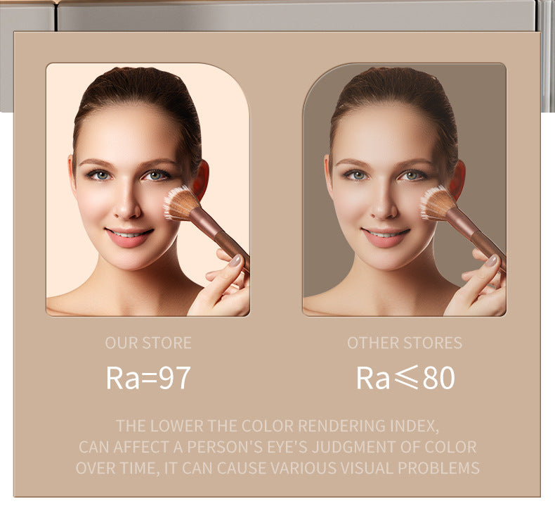 - Adjustable Trichromatic Lighting: Choose from three distinct light modes – Natural Light, Warm Light, and Cold Light – to perfectly simulate various environments. Ensure your makeup looks impeccable whether you are heading to the office, a sunny outing, or an evening event.