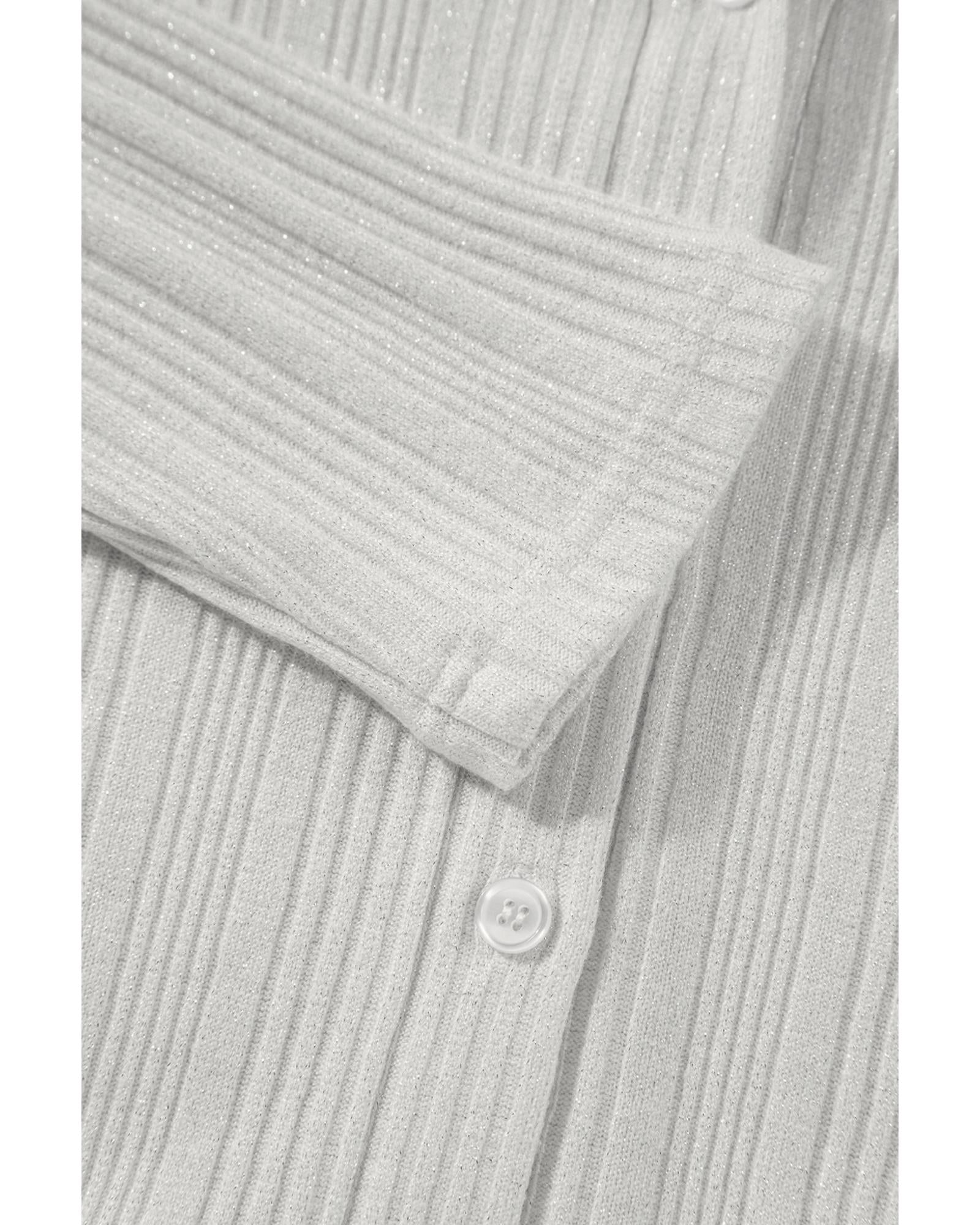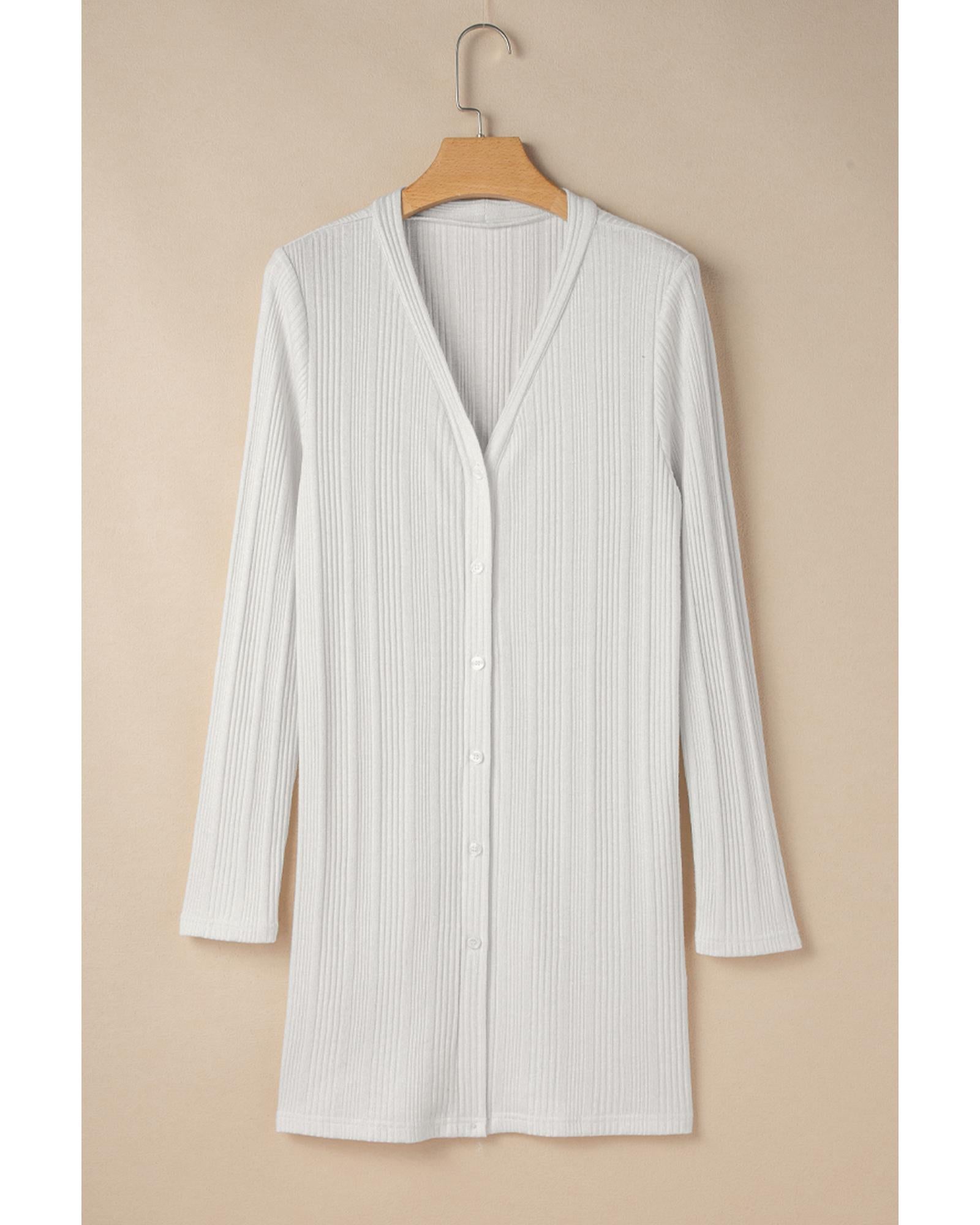 White Solid Color Ribbed Button up Tunic Cardigan - XL