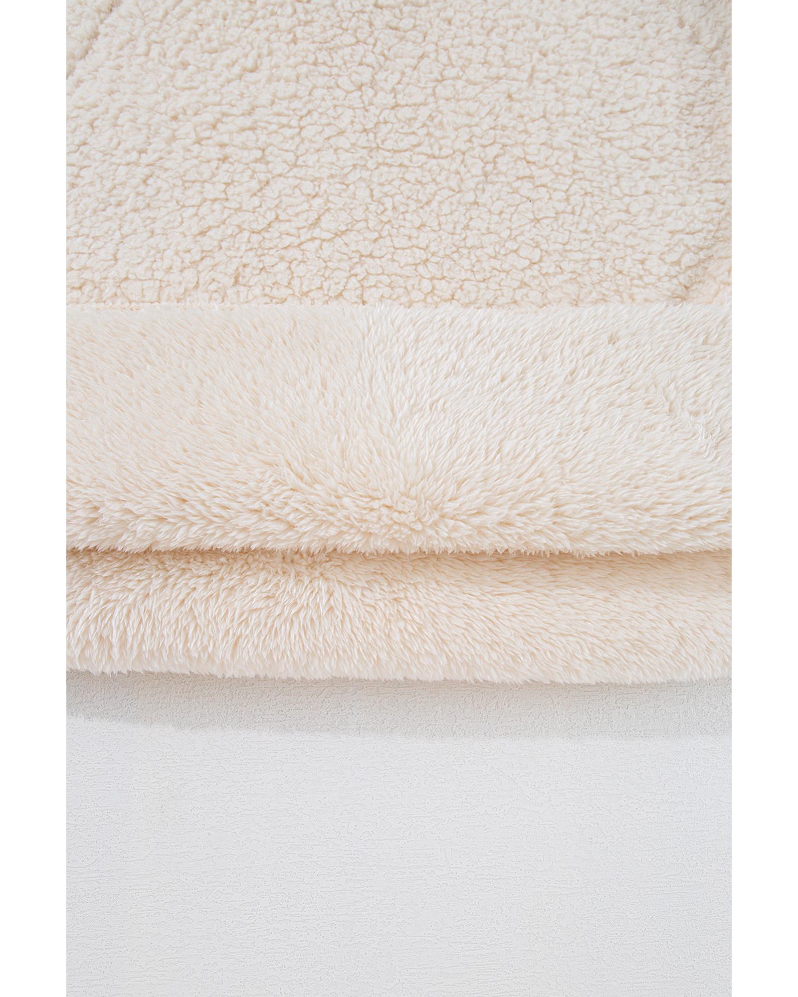 - White Solid Fleece High Neck Drop Shoulder Pullover Sweatshirt
