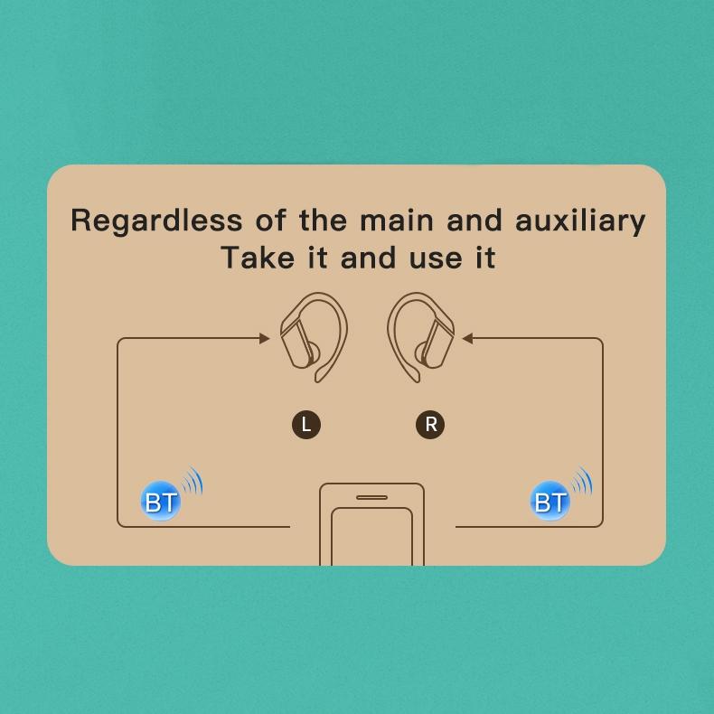 • Left and right earphones can switch between master and slave