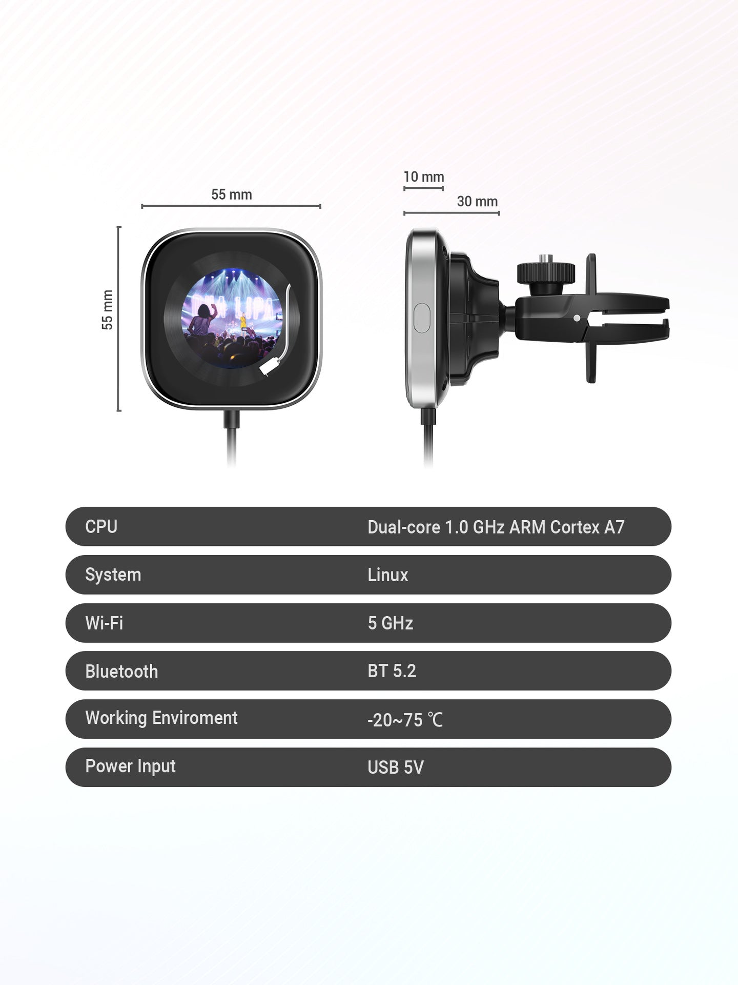 - 1.6" Multi-Functional Screen: A unique customizable display that can show a digital clock, music album art, or personalized photos from your phone.