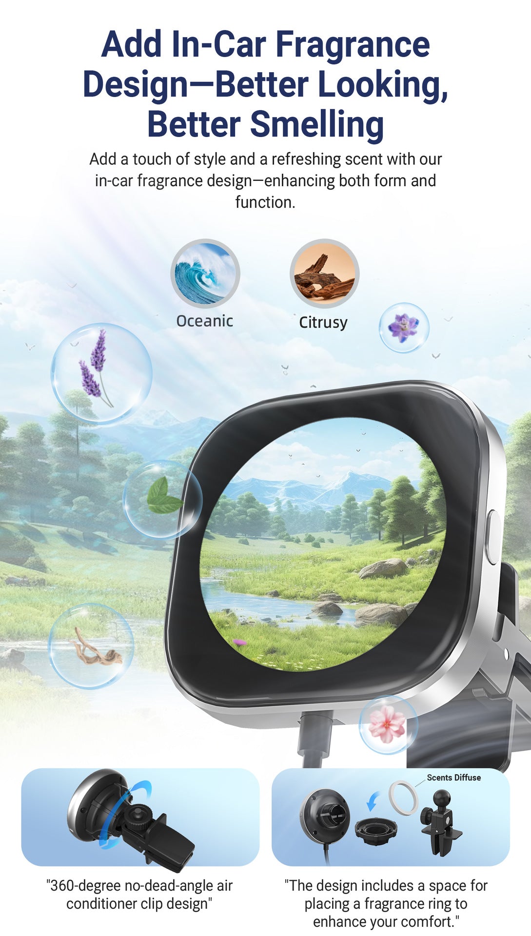 - Integrated Car Diffuser: Features a space for placing a fragrance ring to diffuse scents and enhance your car's atmosphere.