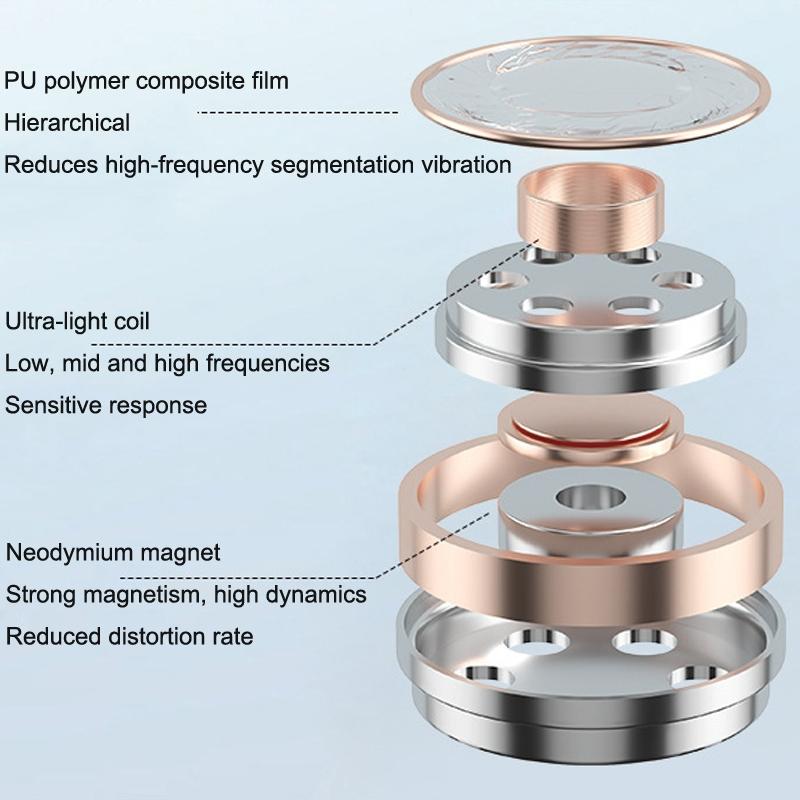 • PU polymer composite film reduces high-frequency split vibration for improved sound quality.