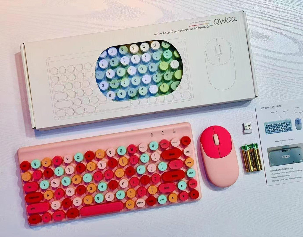 Experience a delightful typing experience with our Wireless Keyboard and Mouse Combo, featuring charming retro round keycaps and a comfortable, ergonomic design. This set connects seamlessly via a 2.4GHz wireless connection (plug and play USB receiver) with a transmission distance of approximately 10 meters. The keyboard boasts an ergonomic 6-degree tilt angle for comfortable typing, reducing finger fatigue. With 86 keys, it offers a compact yet functional layout. Both the keyboard and mouse are designed for multi-device compatibility and offer long-lasting battery life, powered by standard AA batteries. The low-saturation finishes add a touch of sweetness and modern vitality to your workspace.
