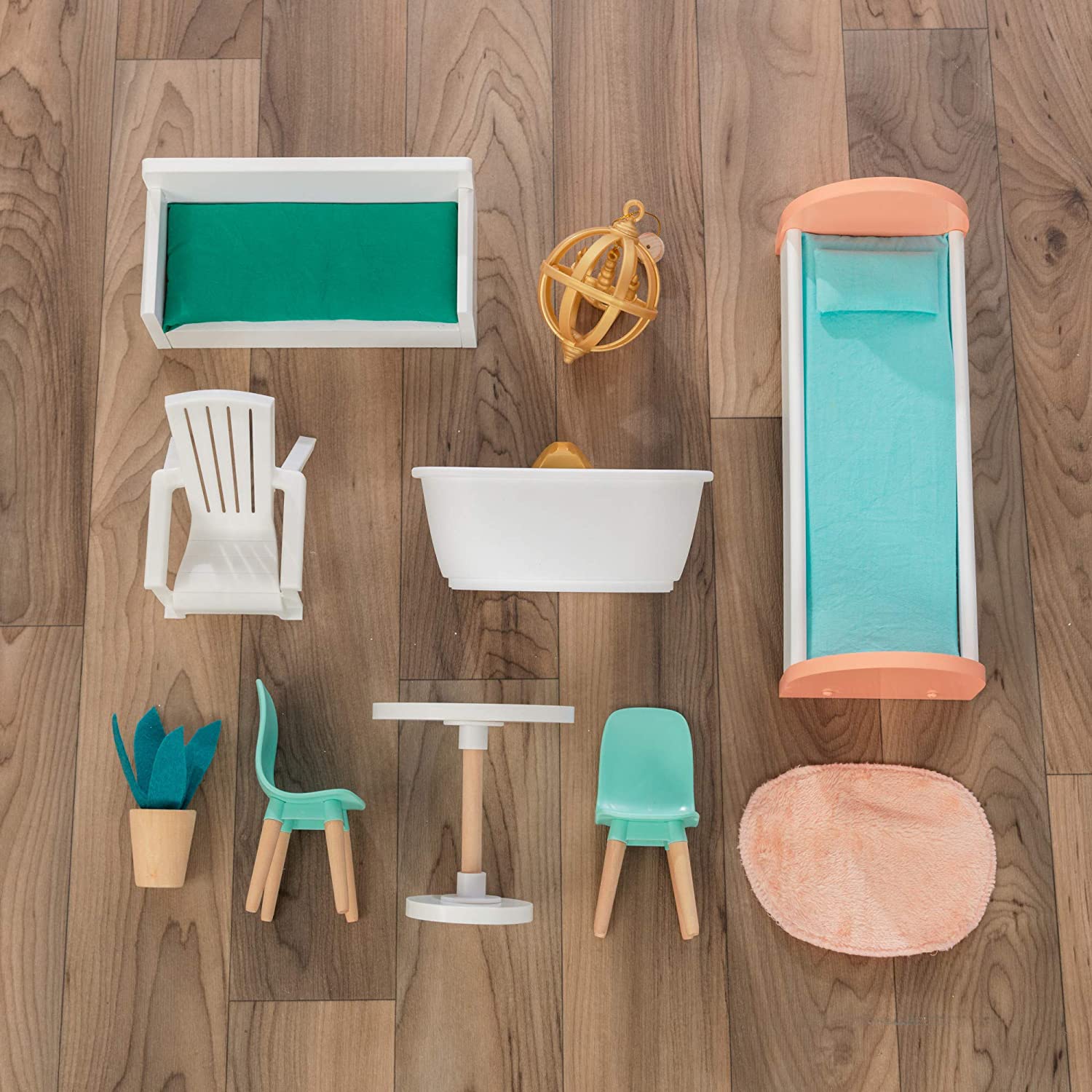 - The rooftop patio is ideal for sitting outside and basking in the sun. The smaller footprint makes this dollhouse ideal for more compact spaces, while still offering up mega amounts of make-believe fun!