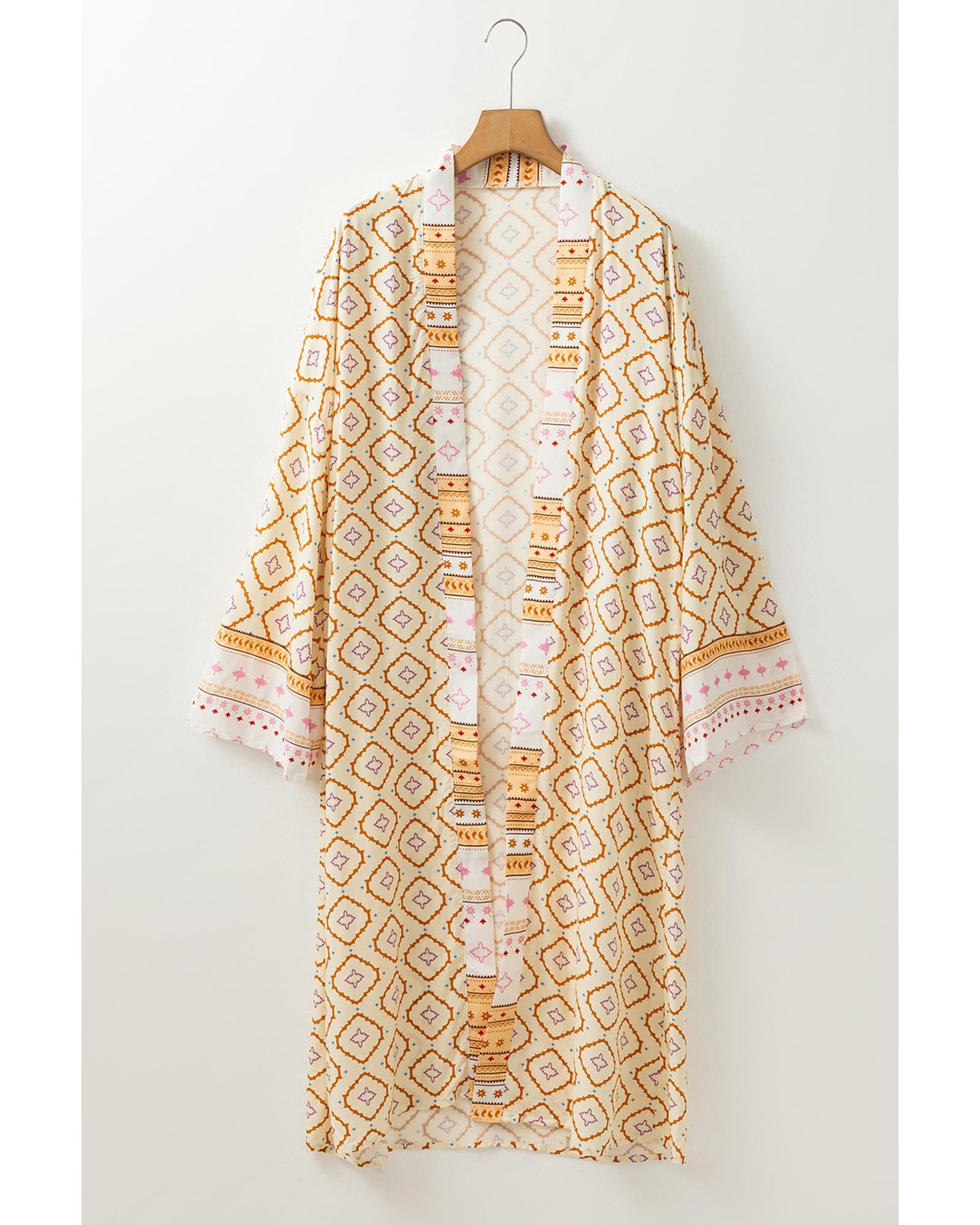 Yellow Bohemian Geometric Printed Loose Sleeve Long Kimono - S