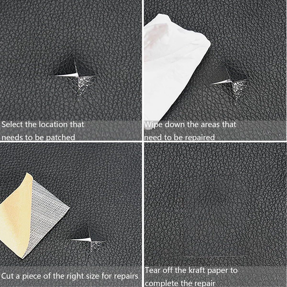 【Package】You will receive a black leather repair sticker with a width of 51.7 inches and a length of 54 inches. You can trim it to size as needed and easily repair it depending on your repair needs. 【Material】Our leather repair patches are made of high-quality faux leather, which feels soft and looks very similar to real leather. The patch has a built-in super glue on the back, making it easy to repair furniture. 【Easy to Use】Cut the leather patch to your desired shape, peel off the adhesive layer of the leather patch, and then stick the patch on holes, tears, and stains on sofas, car seats, or other leather products. The maintenance work will be completed in seconds. 【Wide Application】Our repair patches can be used on leather tape for sofas, leather armchairs, car seats, motorcycle seats, wallets, boots, leather jackets, belts, leather furniture, etc.
